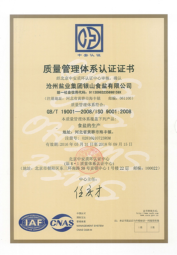 6. 銀山食鹽質(zhì)量管理體系認(rèn)證
