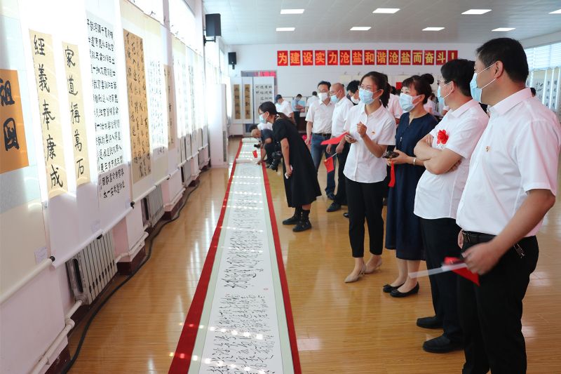 劉建軍表示,今天以書畫展的方式,歌頌黨的豐功偉績,傾吐黨的母親恩情,傳承紅色基因,激發(fā)創(chuàng)業(yè)熱情,不斷豐富發(fā)展滄鹽特色的企業(yè)文化,進(jìn)一步引領(lǐng)方向、凈化心靈,激發(fā)斗志,凝聚力量,影響和帶動(dòng)全體干部職工一心向黨、知黨恩、聽黨話、跟黨走,在各自的崗位上再創(chuàng)佳績、再立新功,必將對企業(yè)文化建設(shè)產(chǎn)生推波助瀾、事半功倍的效果。