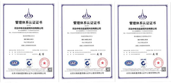 自去年投產(chǎn)以來,中鐵滄鹽科技創(chuàng)新喜報(bào)不斷,捷報(bào)頻傳,先后取得11項(xiàng)實(shí)用新型專利、3項(xiàng)發(fā)明專利、7項(xiàng)3A信用評(píng)價(jià)證書。繼2020年11月獲得河北省科學(xué)技術(shù)廳評(píng)選的河北省創(chuàng)新型中小企業(yè)的稱號(hào)后,通過積極的管理謀劃布局,2021年1月取得質(zhì)量體系、環(huán)境管理體系、職業(yè)健康三大體系ISO9001認(rèn)證;2021年8月通過了全國高新技術(shù)企業(yè)認(rèn)定管理工作領(lǐng)導(dǎo)小組評(píng)選,獲批河北省2021年第一批高新技術(shù)企業(yè)認(rèn)證。2021年9月,公司按照河北省工信廳被動(dòng)式超低能耗建筑產(chǎn)業(yè)項(xiàng)目的文件要求,深度研究政策要求、全面匯總編寫課題資料,通過了工信廳第三方專家技術(shù)評(píng)審和外部財(cái)務(wù)審計(jì)等工作,被順利列入河北省工信廳被動(dòng)式超低能耗建筑產(chǎn)業(yè)項(xiàng)目合格名單,納入政府資金滾動(dòng)支持項(xiàng)目庫。