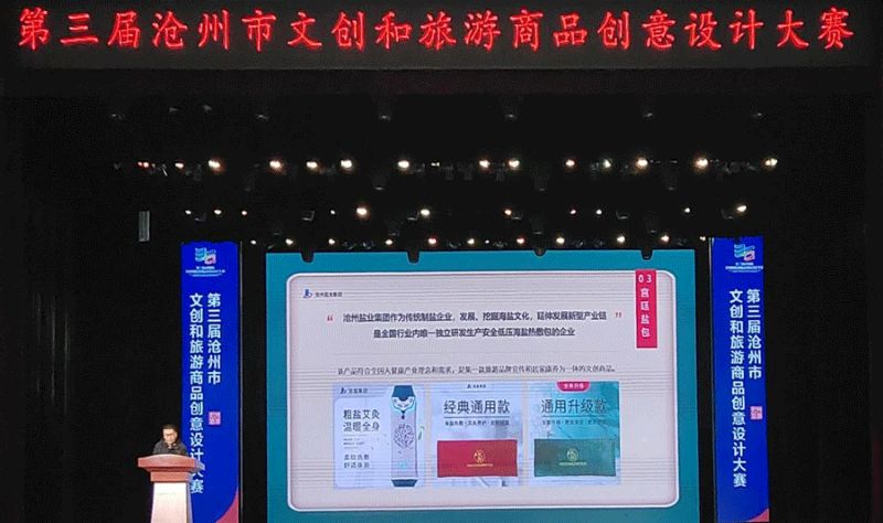 12月2日,第三屆滄州市文創(chuàng)和旅游商品創(chuàng)意設(shè)計(jì)大賽路演暨頒獎(jiǎng)典禮在滄州文化藝術(shù)中心舉行!皽纣}”牌海鹽熱敷包(宮廷款)榮獲銀獎(jiǎng)。