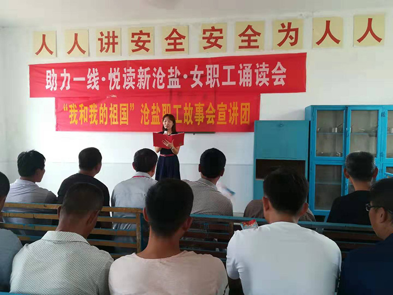 按照滄州市國資委“我和我的祖國”主題宣講和市總工會關于深入開展“巾幗誦讀新思想,砥礪奮進新時代”誦讀活動要求,9月4日上午,工會女工委同宣傳部聯(lián)合舉辦了“‘助力一線·悅讀新滄鹽’暨‘我和我的祖國’滄鹽職工故事宣講”活動。三名女職工講述了三代滄鹽人開發(fā)大鹽灘、建設大鹽場、見證企業(yè)改革發(fā)展變化的切身經(jīng)歷,飽含深情、真摯感人,抒發(fā)了心系滄鹽、奉獻滄鹽的自豪感和幸福感,弘揚了愛崗愛企愛國的家國情懷,表達了以實際行動向新中國70周年獻禮的熱情。