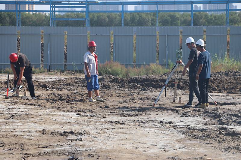 自5月份取得各項(xiàng)施工資質(zhì)后,建筑工程公司便積極參與建筑市場(chǎng)的競(jìng)爭(zhēng),并于6月1日與河北啟邦機(jī)械制造有限公司簽訂了大口徑鋁鎂合金螺旋焊管1#檢測(cè)車間的施工合同。為了確保工程順利實(shí)施,建筑工程公司及時(shí)成立了項(xiàng)目籌建部,積極協(xié)助河北啟邦機(jī)械制造有限公司跑辦施工許可證,溝通工程相關(guān)事宜,并提前做好了路面硬化、項(xiàng)目部設(shè)置、防疫等工作。施工許可證辦結(jié)后,9月4日,安全、質(zhì)檢、測(cè)量等人員正式入駐施工現(xiàn)場(chǎng),拉開(kāi)了工程建設(shè)序幕。截至9月8日,已完成放線和打樁工作。目前,測(cè)量人員正在對(duì)因樁機(jī)震動(dòng)造成放線點(diǎn)位的可能誤差進(jìn)行復(fù)線矯正,待復(fù)線完工后,將依次進(jìn)行開(kāi)槽、基礎(chǔ)施工和鋼結(jié)構(gòu)施工。預(yù)計(jì)11月15日前完成全部工程施工。
