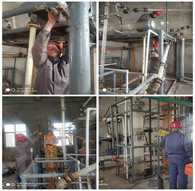 溴素二廠提取冷凝器設(shè)備因使用年限長,冷凝器內(nèi)管有斷裂且沉積物過多堵塞,冷凝效果降低,給溴的蒸餾冷凝及質(zhì)量、產(chǎn)量帶來影響。針對這種狀況,廠班子研究決定對冷凝器進(jìn)行集中更換。由于疫情影響,物流停運(yùn),春節(jié)前在石家莊預(yù)定的設(shè)備無法正常發(fā)貨。為了能夠完成生產(chǎn)任務(wù),溴素二廠職工多次對冷凝器漏水部位采取封堵措施,堅持生產(chǎn)運(yùn)行。