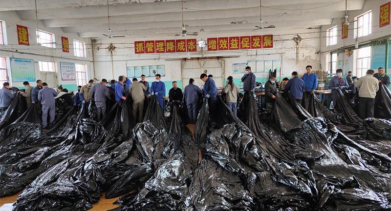 節(jié)日期間,工貿公司上下齊心協(xié)力,從班子、其他車間職工到工勤崗位全員出動,主動放棄休息,在保證安全生產和完善疫情防控的要求下,加班生產。為了降低職工勞動強度,技術研發(fā)部門通過多次改進,設計制造出了塑苫傳送裝置,大大節(jié)約了人力成本,提高了配送效率。