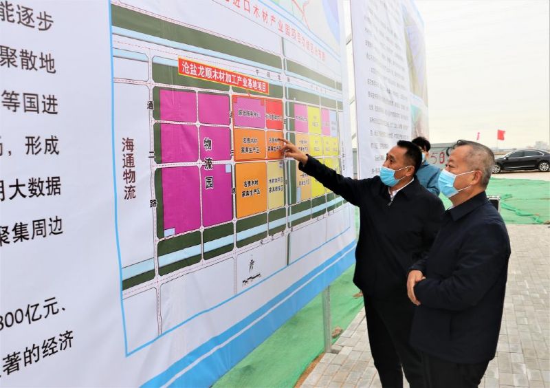 在滄鹽龍順木材加工產(chǎn)業(yè)基地,觀摩團(tuán)現(xiàn)場聽取了華北進(jìn)口木材產(chǎn)業(yè)園、滄鹽龍順木材加工產(chǎn)業(yè)基地項(xiàng)目概況。黨委書記、董事長劉建軍向?qū)m建軍詳細(xì)介紹了項(xiàng)目推動(dòng)情況及下步總體推進(jìn)計(jì)劃。宮建軍對(duì)滄鹽集團(tuán)的項(xiàng)目建設(shè)工作給予了充分肯定,并表示,滄州渤海新區(qū)黃驊市將繼續(xù)大力支持滄鹽集團(tuán)的各項(xiàng)工作,希望滄鹽集團(tuán)進(jìn)一步抓好招商引資和項(xiàng)目建設(shè)工作,為滄州渤海新區(qū)黃驊市的發(fā)展做出更大貢獻(xiàn)。