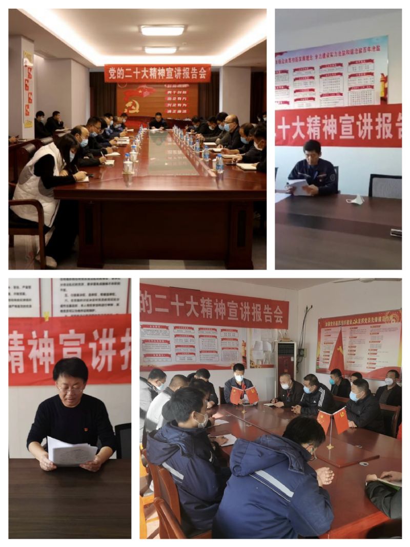 進(jìn)入12月份以來,公司各基層黨組織按照公司黨委要求,將學(xué)習(xí)宣傳貫徹黨的二十大精神作為當(dāng)前的首要政治任務(wù),通過各種形式做好學(xué)習(xí)宣傳貫徹工作。