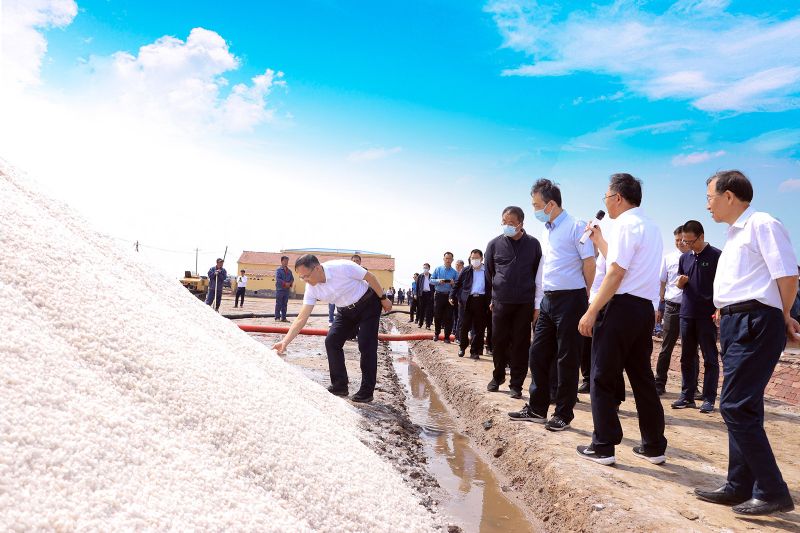 5月14日,國家發(fā)展改革委農(nóng)經(jīng)司司長吳曉帶領(lǐng)財政部、農(nóng)業(yè)農(nóng)村部、自然資源部、水利部、生態(tài)環(huán)境部、林草局、中國科學(xué)院、中國農(nóng)科院多部委聯(lián)合調(diào)研組來公司調(diào)研,深入長蘆公司詳細了解原鹽生產(chǎn)情況。河北省相關(guān)單位領(lǐng)導(dǎo),滄州市委常委,渤海新區(qū)黨工委書記、黃驊市委書記董鳴鏑,公司黨委書記、董事長劉建軍,副總經(jīng)理文興峰陪同調(diào)研。