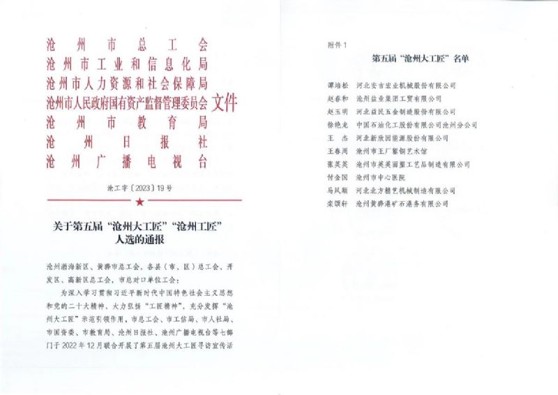“滄州大工匠”是滄州市企業(yè)技能人才的至高榮譽,評選活動由市總工會、市工信局、市人社局、市國資委、市教育局、滄州日報社、滄州廣播電視臺等七部門于 2022 年 12 月聯(lián)合開展,面向全市企業(yè)長期堅守生產(chǎn)一線、從事技能工作的技工精英;顒幼罱K評選出滄州大工匠10名,滄州工匠10名。
