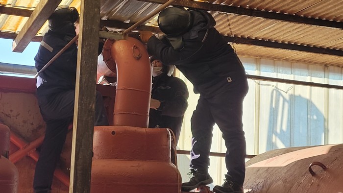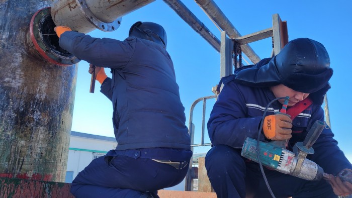 雖然近期天氣嚴(yán)寒,夜間氣溫降至零下十幾度,但為了盡快完成維修任務(wù),溴素二廠職工們不畏寒冷,穿戴齊全防寒服、棉靴子、皮棉帽和棉手套等御寒護(hù)具,在共產(chǎn)黨員、班組長的帶領(lǐng)下,全力投入維保工作。叉車在廠區(qū)來回穿梭,職工們不懼寒風(fēng)凜冽,干得熱火朝天。