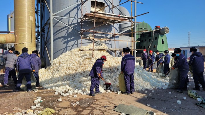 溴素二廠廠區(qū)南“吹出塔”始建于2017年,經(jīng)過多年高強(qiáng)度運(yùn)行,內(nèi)部填充物“階梯環(huán)”腐蝕氧化嚴(yán)重,致使溴素生產(chǎn)過程中吸收效果大大降低。為進(jìn)一步提高溴素吸收率,增強(qiáng)塔內(nèi)綜合反應(yīng)效果,保障溴素生產(chǎn)質(zhì)量,溴素二廠全體干部職工于1月4日開始,啟動“吹出塔”填充物更換工作。在更換過程中,職工們協(xié)同作戰(zhàn),分工合作,僅用三天時間便完成了更換工作,比原計劃提前了兩天,為2024年溴素穩(wěn)產(chǎn)高產(chǎn)打下堅實基礎(chǔ)。