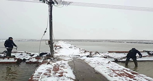 根據(jù)天氣預(yù)報,長蘆公司提前做好保鹵、加深結(jié)晶池、防滑防凍、留崗值班、交通安全等防災(zāi)減災(zāi)安排。全體生產(chǎn)管理人員、制鹵人員堅守崗位,冒著暴風(fēng)雪寒潮開啟循環(huán)串壕、融化積雪,徹夜進(jìn)行結(jié)晶池和調(diào)節(jié)池片淡,盡最大限度減少鹽鹵損失。