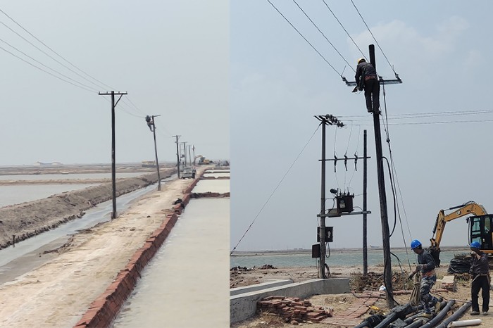 春扒將至,為了保障春扒順利進(jìn)行,青鋒鹽業(yè)有限公司針對(duì)鹽區(qū)電力實(shí)際,從4月28日開始,利用三天時(shí)間,對(duì)二、三號(hào)灘的輸電線路進(jìn)行了更新。