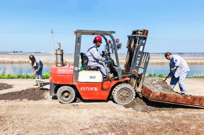 長蘆公司制鹵二工區(qū)第六泵站通往溴素有限公司溴素三廠的路段因強(qiáng)降雨沖刷,路面坑洼遍布、積水橫流,車輛、人員顛簸難行,既給職工上下班及原料運(yùn)輸帶來極大不便,也埋下了安全隱患。群眾所盼,行動所向。7月18日,溴素三廠10余名黨員干部及骨干組建了突擊隊,備齊鐵鍬、砂石料、叉車等工具設(shè)備,對該路段進(jìn)了修補(bǔ)。