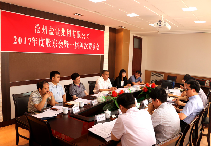 2017年度股東會(huì)暨一屆四次董事會(huì)經(jīng)過(guò)認(rèn)真審議,通過(guò)了《總經(jīng)理工作報(bào)告》、《2016年度財(cái)務(wù)決算及2017年度財(cái)務(wù)預(yù)算的報(bào)告》、《2017年度生產(chǎn)經(jīng)營(yíng)計(jì)劃》、《2017年固定資產(chǎn)更新改造計(jì)劃》、《關(guān)于融資借款計(jì)劃的議案》、《關(guān)于提高占地補(bǔ)償標(biāo)準(zhǔn)的議案》、《關(guān)于機(jī)構(gòu)設(shè)置方案的議案》、《關(guān)于職工薪酬調(diào)整方案的議案》、《滄州鹽業(yè)集團(tuán)有限公司章程修正案》、《2017年項(xiàng)目建設(shè)推動(dòng)方案的議案》等10個(gè)議案。