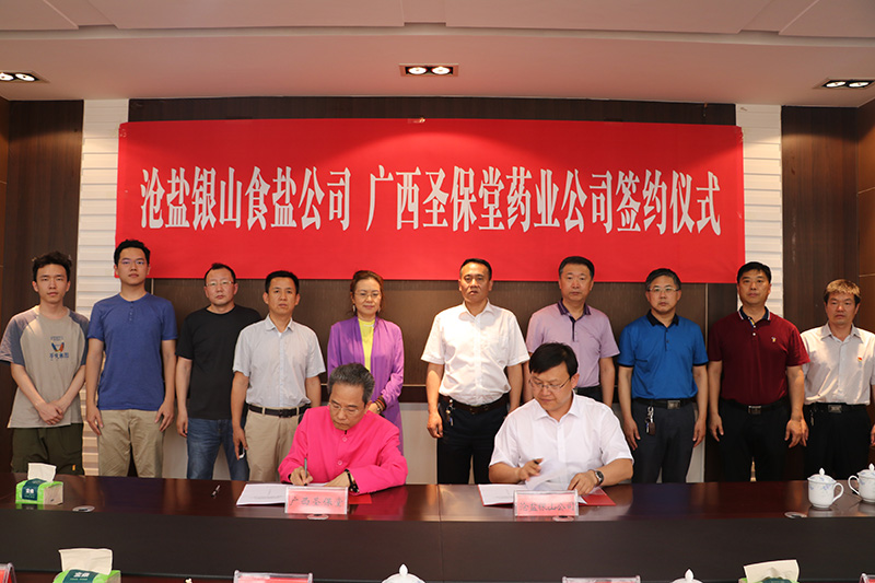6月6日,滄鹽集團銀山食鹽公司與廣西圣保堂藥業(yè)公司合作意向簽約儀式在集團三樓會議室舉行,銀山食鹽公司經(jīng)理、法人代表高文生與廣西圣保堂董事長黃愛強分別代表雙方簽署合作意向書。