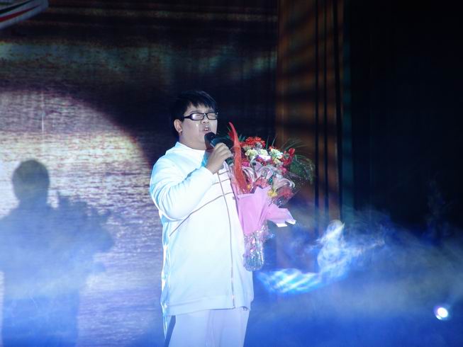 中鹽總公司副總經(jīng)理萬建軍(右)即興演唱